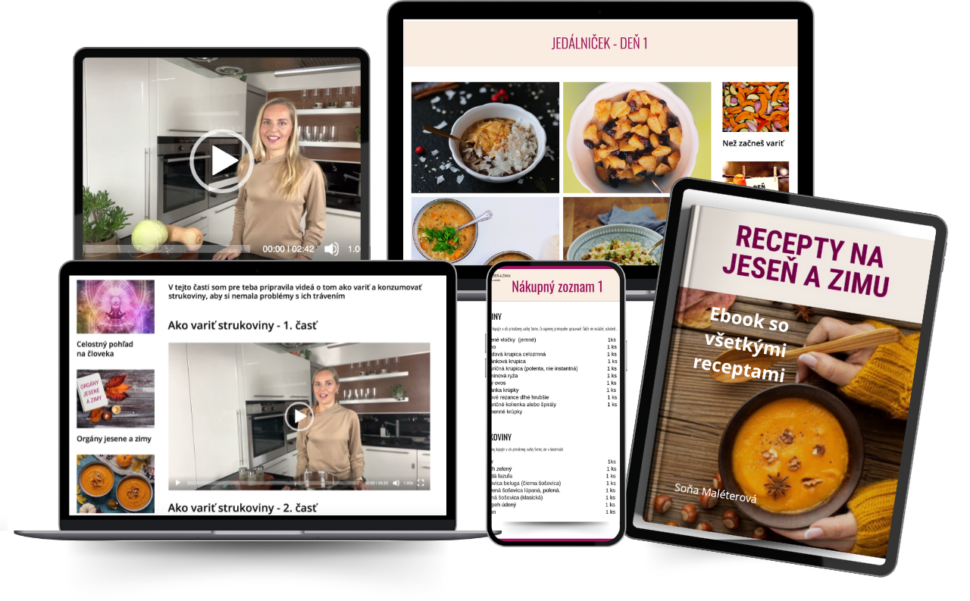 - Variť jedlá, ktoré podporujú zdravé chudnutie bez hladu – žiadne studené šaláty, ale sýte a výživné recepty prispôsobené ročnému obdobiu.